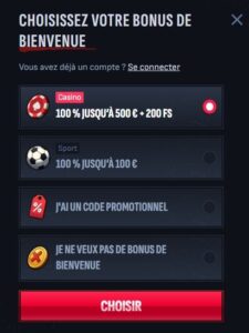 - Un bonus de bienvenue jusqu’à 500€ + 200 FS
